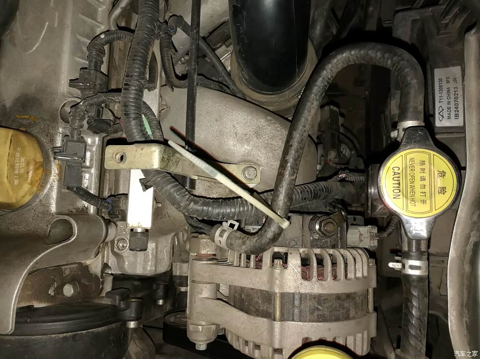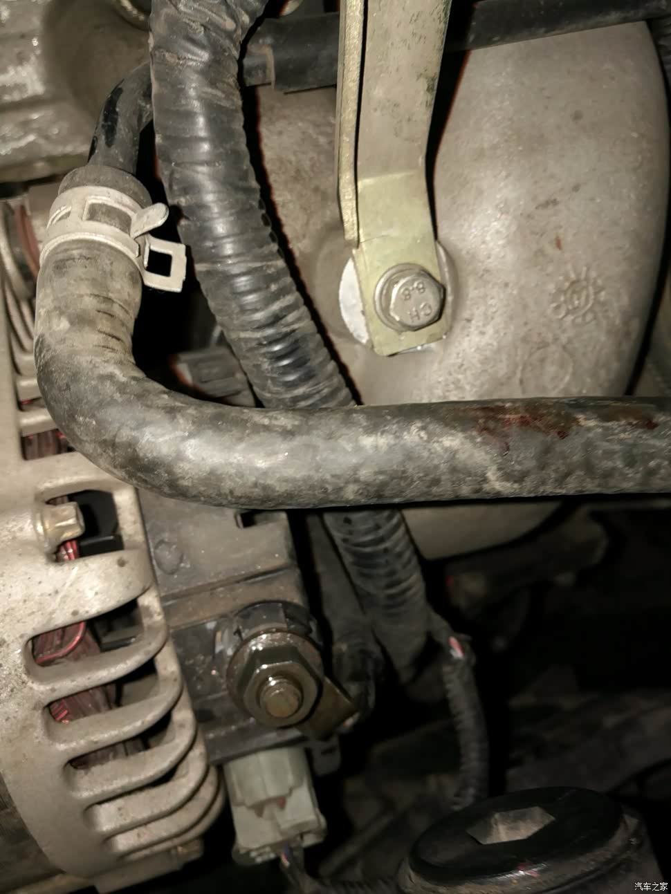 在修理过程中,发现,这个进气歧管温度很,很烫手,再看,发电机正极输出线另组线就直接挨着进气歧管,这个样子,虽然电线是温环境专用,但还是隔开下比较好,就用扎带把靠在进气歧管组电线好歹隔开了下,发电机正级输出线,以后再想个办法隔下吧。