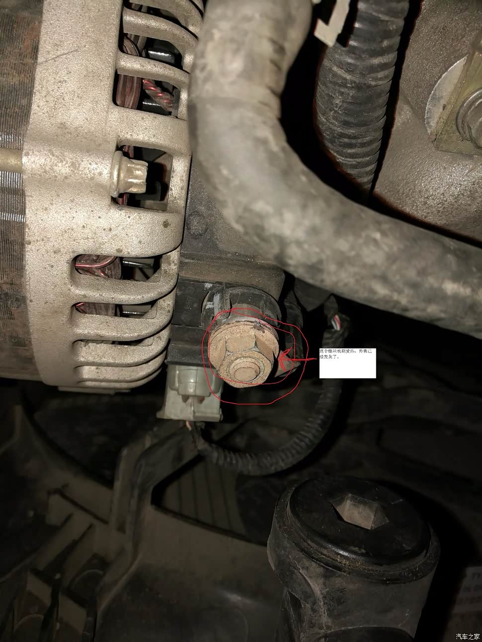 当时我就断定:发电机是好,肯定是某个方接触良,然后,熄了火,重新打开机仓,摸发电机正极桩头,烫得老子直甩手!我日!!才打燃到分钟,啷个发热这么凶!!肯定正常!然后,仔细查看,妈!!正极面螺帽得很紧,但是,下面正极输出接头,是松!!!你没有看错,是松!!气死老子了!!因为我这个车是年初修过。这个桩子没有紧是工太负责,没有紧。